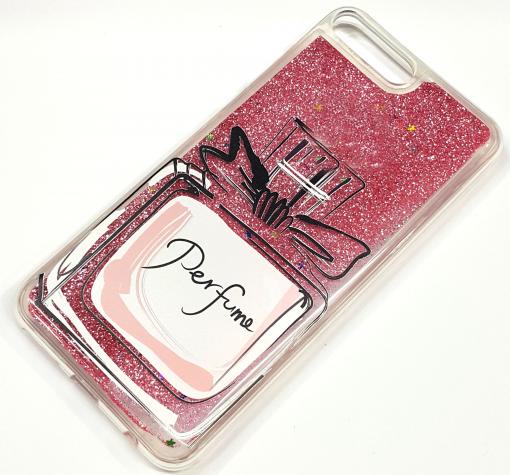 Луксозен твърд гръб 3D за Apple iPhone 5 / iPhone 5S / iPhone SE - прозрачен / розов брокат / Perfume