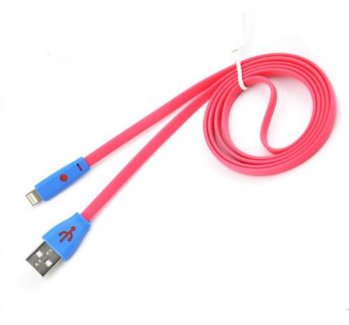 USB кабел / USB Charging Cable за Apple iPhone 5 / iPhone 5S / iPhone 5C / iPhone 6 - цикламен / Smiley Face