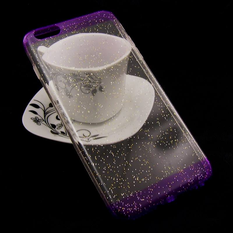 Силиконов калъф / гръб / TPU с брокат за Apple iPhone 6 Plus / iPhone 6S Plus - прозрачен с лилаво