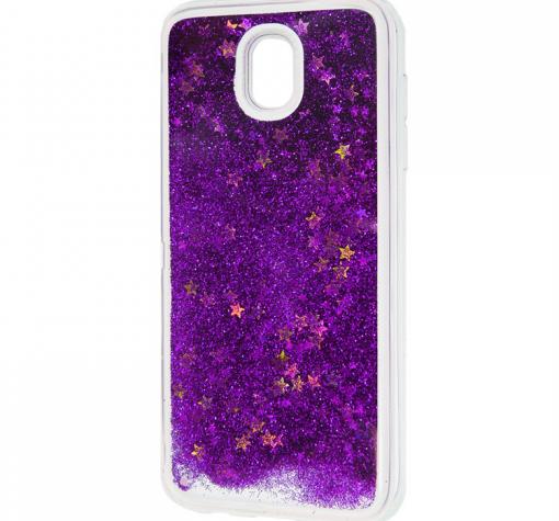 Луксозен твърд гръб 3D за Nokia 6 2017 - прозрачен / лилав брокат / звездички