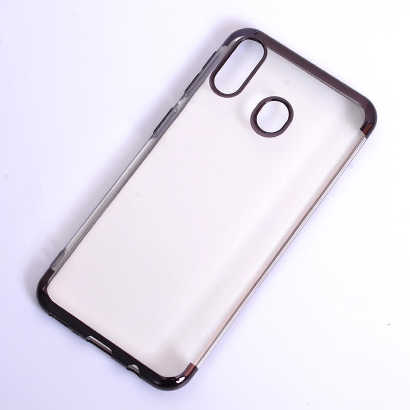 Луксозен силиконов калъф / гръб / TPU за Samsung Galaxy A20 - прозрачен / черен кант