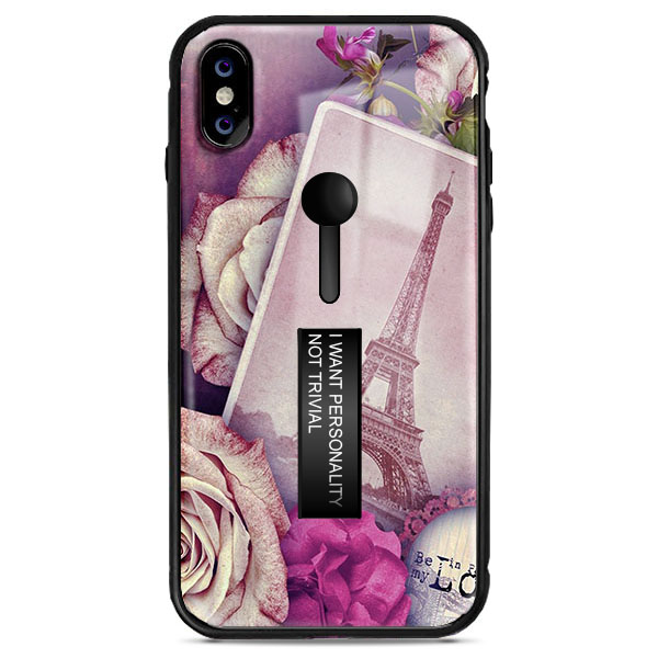 Луксозен гръб с подвижен пръстен/държач за Samsung Galaxy A7 2018 A750F - Айфелова кула / цветя