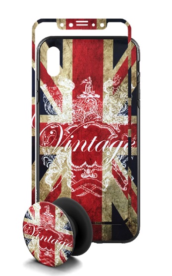 Луксозен твърд гръб 3in1 със стъклен протектор и Popsocket за Samsung Galaxy A7 2018 A750F - Retro British Flag