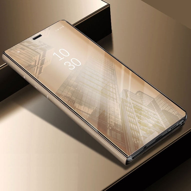 Луксозен калъф Clear View Cover с твърд гръб за Samsung Galaxy A9 A920F 2018 - златист