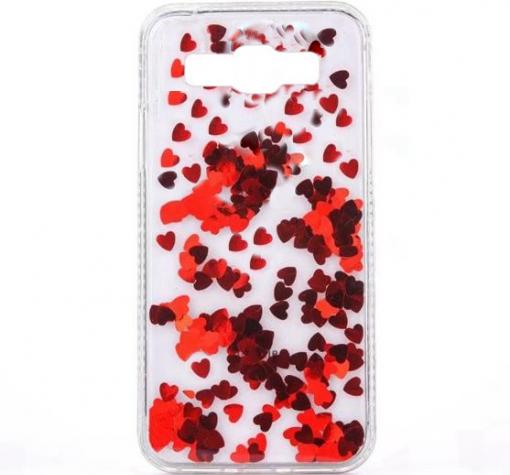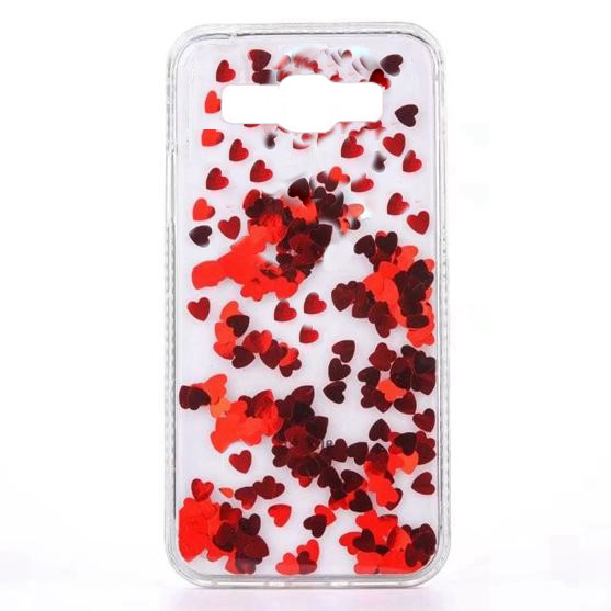 Луксозен твърд гръб 3D за Samsung Galaxy J3 / J3 2016 J320 - прозрачен / сребрист брокат / сърца