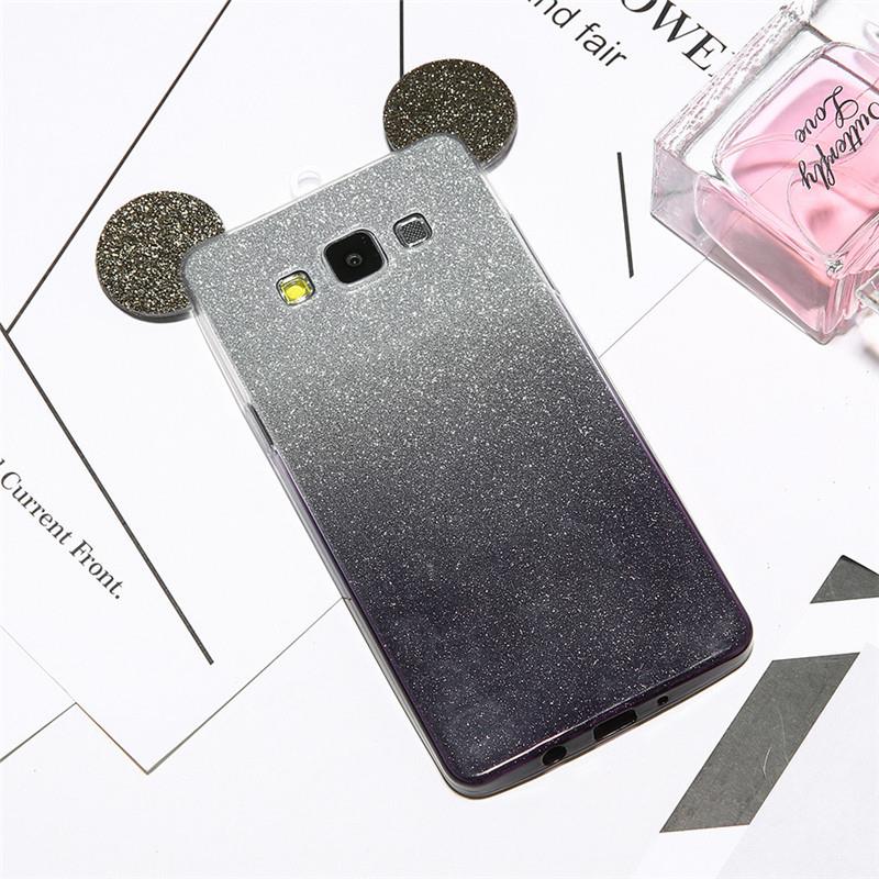 Луксозен силиконов калъф / гръб / TPU 3D за Samsung Galaxy J5 2016 J510 - преливащ / черно и сиво / брокат / миши ушички / 2в1