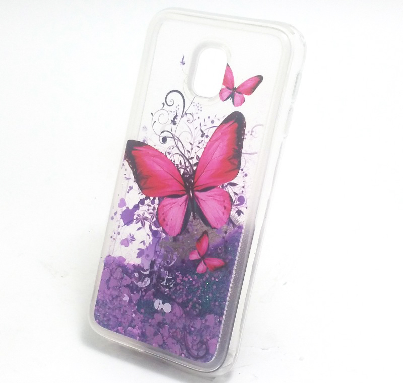 Луксозен твърд гръб 3D за Samsung Galaxy J5 2017 J530 - прозрачен / пеперуди / лилав брокат