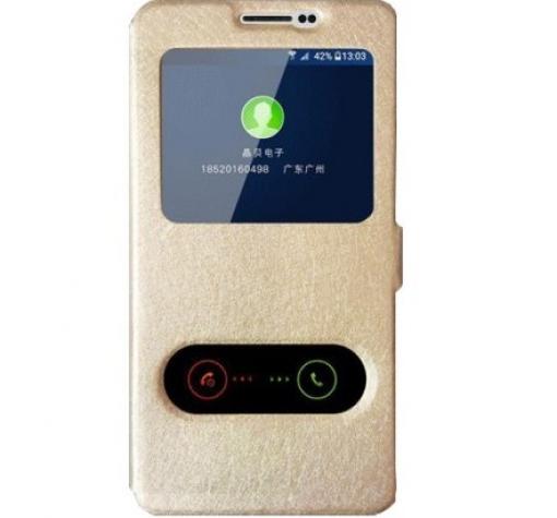 Кожен калъф Flip тефтер S-view със стойка за Samsung Galaxy J5 J500 - Flexi / златен