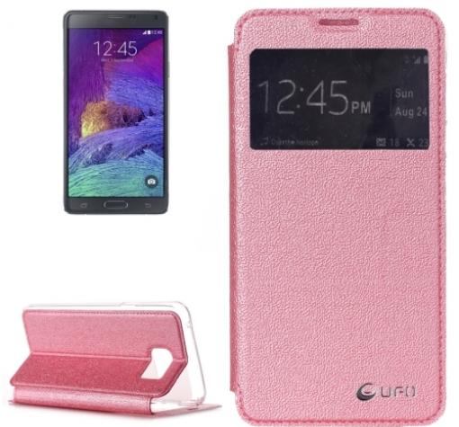 Луксозен кожен калъф Flip тефтер S-View UFO със стойка за Samsung Galaxy Note 5 N920 - розов
