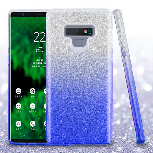 Силиконов калъф / гръб / TPU за Samsung Galaxy Note 9 - преливащ / сребристо и синьо / брокат