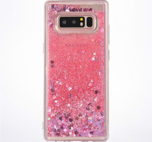 Луксозен твърд гръб 3D Water Case за Samsung Galaxy S10 - прозрачен / течен гръб с брокат / сърца / розов