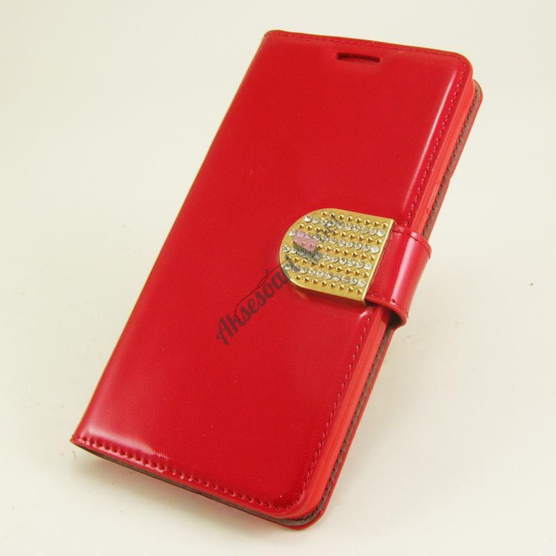 Кожен калъф Flip тефтер New Face с камъни и стойка за Samsung Galaxy Note 4 N910 - червен